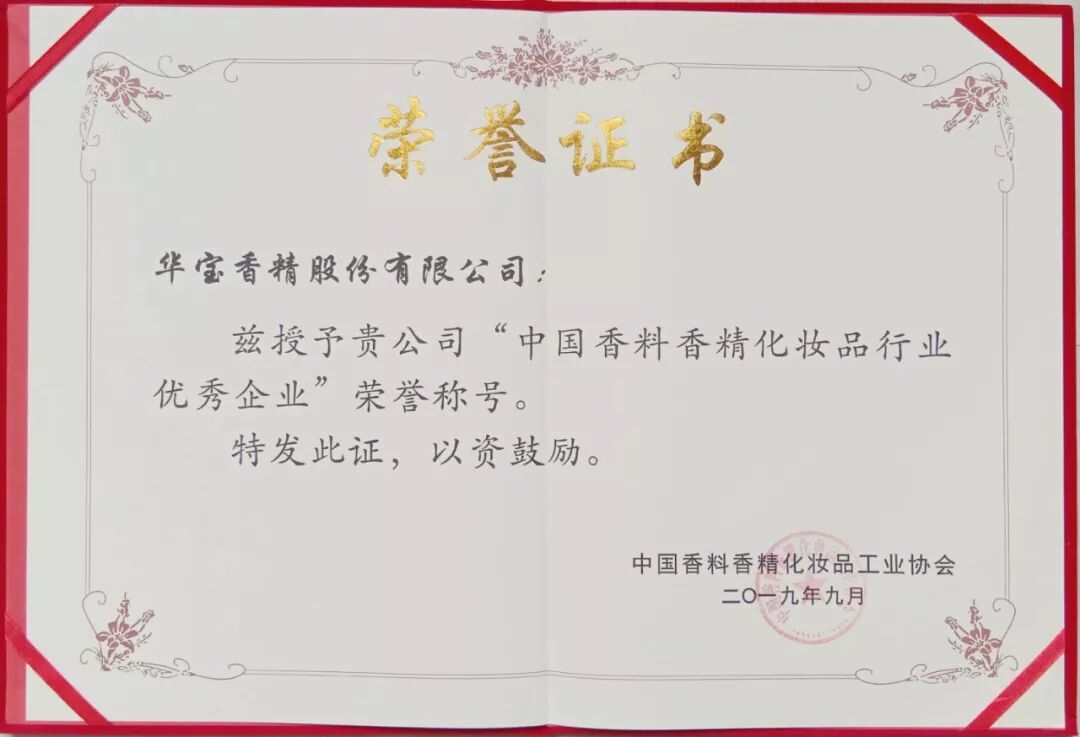 华宝香精股份有限公司荣获“中国香料香精化妆品行业优秀企业”荣誉称号
