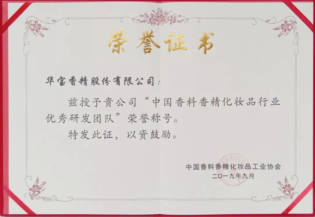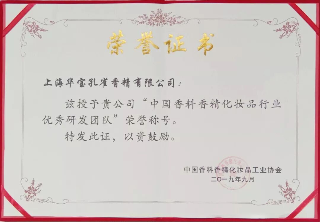 华宝香精股份有限公司荣获“中国香料香精化妆品行业优秀研发团队”荣誉称号