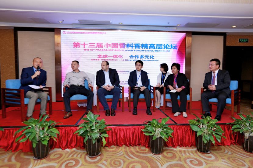 会议论坛中,杨成先生与IOFI执行总监Sven Ballschmiede先生、IFRA亚太区总监Rohaya Mamat女士、国际香料(中国)有限公司大中华区执行董事蔡志强先生、厦门欧米克生物科技有限公司总裁邓至敏先生就“全球一体化,合作多元化”进行了深入探讨。杨成先生表示,香精香料行业拥有广阔的市场空间和强大的发展动力,香精香料企业应抓住行业发展窗口期,加快创新转型升级步伐,提升全球竞争力,努力构建全球香精香料市场领导地位。在本次年会举办的颁奖典礼中,华宝香精股份有限公司荣获中国香料香精化妆品协会颁发的“中国香料香精化妆品行业优秀企业”、“中国香料香精化妆品行业社会责任——公益活动”、“中国香料香精化妆品行业优秀研发团队”称号;华宝股份董事、总裁袁肖琴女士荣获“中国香料香精化妆品行业优秀企业家”称号;华宝股份下属全资子公司上海华宝孔雀香精有限公司同时斩获“中国香料香精化妆品行业优秀研发团队”称号。